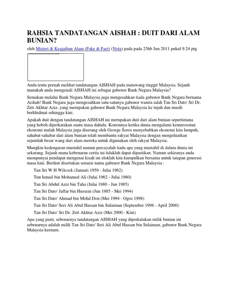 Tandatangan gabenor bank negara malaysia dahulu hingga sekarang youtube.